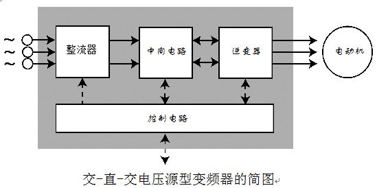 上圖為變頻器的結(jié)構(gòu)圖,變頻器主要有以下四個(gè)部分組成:
