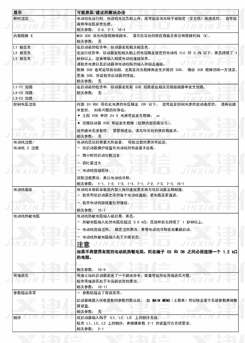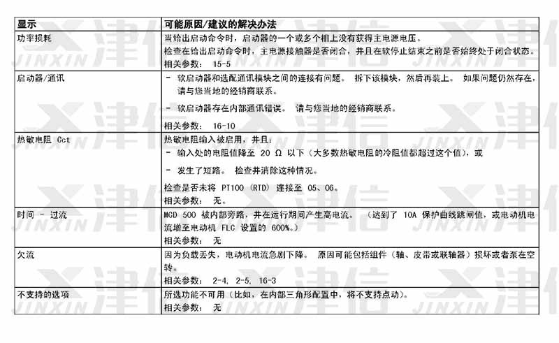 在軟啟動(dòng)器使用過程中,如果偵測(cè)到故障信息,軟啟動(dòng)器會(huì)在日志中記錄相關(guān)信息,還可能跳閘或發(fā)出警告。軟啟動(dòng)器跳閘后,只有將該軟啟動(dòng)器復(fù)位才能重新啟動(dòng)。 如果發(fā)出警告,則一旦消除了警告原因,軟啟動(dòng)器便會(huì)自動(dòng)復(fù)位。