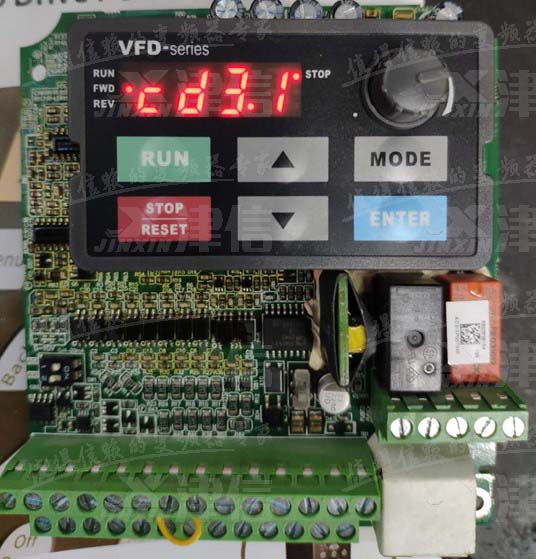 用戶送修一臺臺達C200系列變頻器到上海津信維修服務中心(如下圖1),送電顯示cd3.1(如下圖2所示),不可復位,斷電重新上電后依舊報警,查看C200系列說明書可知,該故障為W相電流偵測異常。