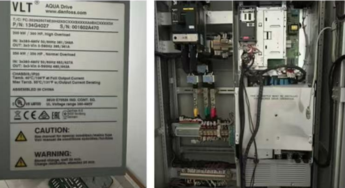 丹佛斯FC202是丹佛斯AQUA專用變頻器,是一款專用于水處理領(lǐng)域的變頻器,具備諸多適配水行業(yè)工況的特性與優(yōu)勢。由于用戶現(xiàn)場使用的是 200KW 潛水泵,且無法獲取電機(jī)參數(shù),所以上海津信維修人員首先對變頻器參數(shù)進(jìn)行了調(diào)整,增大了電機(jī)額定電流。重新帶電機(jī)運(yùn)行后,變頻器能夠上升至 45Hz,但隨后再次報(bào)出電流超限故障,并且電機(jī)發(fā)出異常聲響,呈現(xiàn)出明顯的缺相特征。?